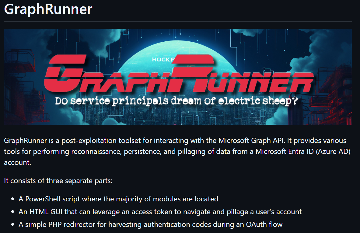 We maken hierbij gebruik van een tool genaamd Graphrunner. Deze toolset is ontwikkeld door Black Hills Information Security (https://www.blackhillsinfosec.com/introducing-graphrunner) en is gebaseerd op PowerShell en maakt gebruik van de Microsoft Graph API om met de Entra ID te verbinden.
