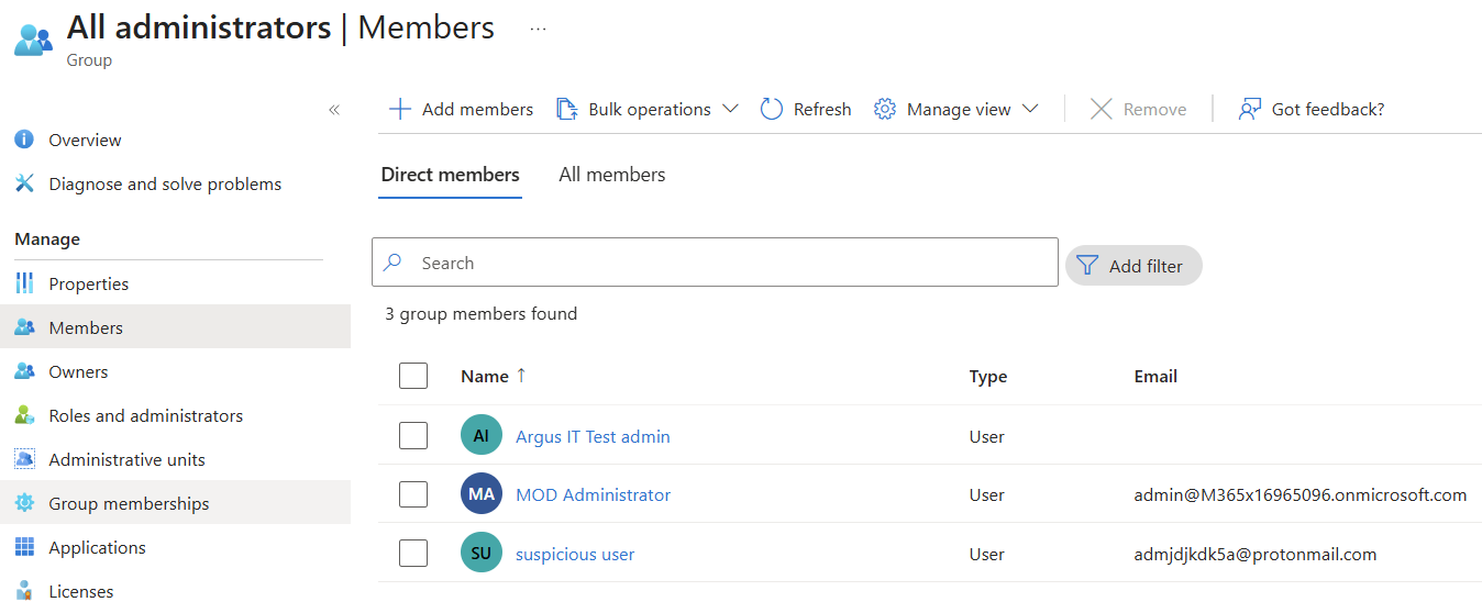 We weten nu dat alle accounts, in de betreffende Entra ID omgeving, waarvan de User Principal Name begint met adm automatisch worden toegewezen aan de groep "All administrators"